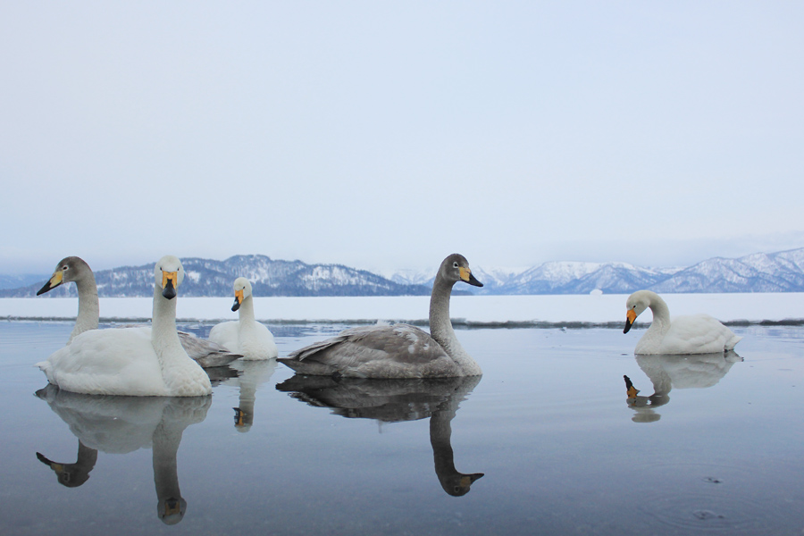The next morning, I decided to go to the lake to photograph the swans. Yann suggested me to go early before the swans arrive so that we can take photos of them while flying in. I arrived at the lake around 7:30AM and there were only few swans there. This lake is special because it has some hot water coming in from the hot springs nearby making parts of the lake ice-free. The swans started to arrive just a little after that and we had a nice time taking photos of them even though they were just too close. It's pretty hard to believe that these are actually wild birds.